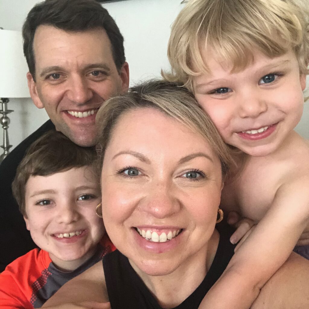 Tell us about your family! Who do you live with, and what are their names and ages? I am home with my husband Mark (43), my son Blaine (8), and my son Quinn (4). What does your current day-to-day look like? What are you juggling? Our agency is extremely busy right now, which is a blessing, so I am working from home essentially the way I would be working from the office. Minus the 3-hour round-trip commute! Days are packed with internal team meetings, client Zoom calls, and even a few new business presentations. My husband is a golf instructor, so he is not able to work as normal, but he is finding ways to stay connected with his students through virtual platforms. We are taking turns caring for our boys and helping them with their schoolwork and other projects to keep them occupied. My "me time" is now cooking. Our kitchen has turned out some incredible bread and other baked goods over the past month, which I mostly give away to neighbors. This time together, while challenging, has turned out to be a very special gift for our family. When things return to "normal," I will miss being with them. What three words would you use to describe your feelings or experience during this time? Blessed, fulfilled, challenged