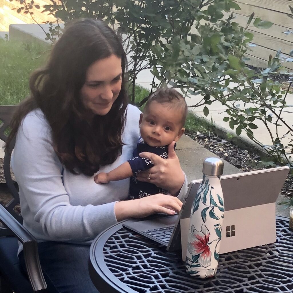 Tell us about your family! Who do you live with, and what are their names and ages? I live with my husband, Kevin, and 3-month-old son, Russell. What does your current day-to-day look like? What are you juggling? When DC issued the initial stay-at-home directive, I was scheduled to be on maternity leave for another three weeks. When we moved to full-time remote work I decided to go back early because with both my husband and I home—and my place of work being super flexible—we felt we had it covered. Now, I am juggling caring for my little one with daily Teams calls and chats, plus ramping up for our big celebration week, which will be all virtual this year. I feel grateful to have more time at home than I had planned to with my son, but it is a challenge to manage both at once. I couldn’t do it without my husband who has flexibility with work as well. What three words would you use to describe your feelings or experience during this time? Busy, grateful, dynamic