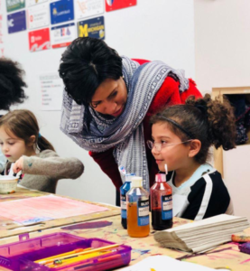 That’s why Mayor Muriel Bowser visited Sitar on February 5, during Education Week in Washington, DC, for the launch of Learn24, a new initiative geared toward helping ensure all local children have access to quality activities beyond the school day. The initiative includes the new Office of Out of School Time Grants and Youth Outcomes, which will award $2 million in grants annually to 40 organizations, including Sitar, serving more than 23,000 children in Washington, DC. Joining Mayor Bowser at the press conference were Jennifer Niles, Deputy Mayor for Education and Maureen Dwyer, Executive Director of Sitar Arts Center. But, the star of the press conference was 10-year old Sitar student, Daniela Carrillo. Daniela spoke eloquently of her years at Sitar and of how it has enabled her to find her true passion. “It’s better to be at Sitar than at home watching TV”, Daniela said. “Because TV will always be there, but missing a day at Sitar can never be replaced.” With these words, Daniela put the impact of Sitar’s community into perspective for all to witness. Daniella then had the honor of welcoming Mayor Bowser to speak. Again, displaying her confidence in a moment that could make anyone nervous, this exceptional young lady was at ease bringing the Mayor of the nation’s capital to the podium. The Mayor spoke of her vision for a Washington where families across the cultural, economic and racial spectrums can live and thrive. Learn24 plays a feature role in obtaining that vision. It is a program aimed at helping DC students advance socially, civically and academically. (Students and families find safe and enriching programs that fit their needs by visiting the Learn24 online guide, learn24.dc.gov.) In her remarks, Mayor Bowser also declared her admiration for Sitar’s focus on the arts. Referring to arts as more than an add-on, a fun thing to do in addition to academics, she noted how the arts contribute to a student’s ability to learn, and how a focus on students’ creativity and imagination translate to success both in and out of the classroom. After the press conference, Mayor Bowser visited with students and classes at Sitar Arts Center. She witnessed firsthand Sitar students creating, performing, and learning outside of regular school hours.